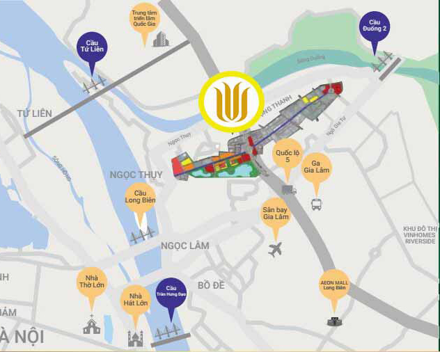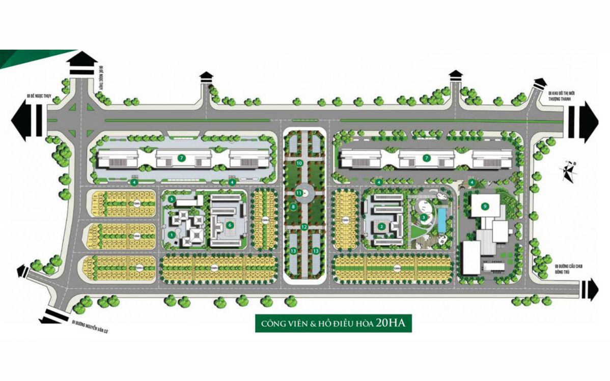 Tam cận lộ: Dự án nằm ngay trục đường chính của dự án rộng 40m, kết nối trực tiếp dự án với đường Lý Sơn (Quốc lộ 5B kéo dài) từ đó di chuyển dễ dàng tới cao tốc Hà Nội – Hải Phòng hay quốc lộ 1A tới các tỉnh Hải Dương, Hải Phòng, Bắc Ninh, Bắc Giang, Lạng Sơn…Từ dự án cư dân chỉ mất chưa đầy 30 phút để tới sân bay Nội Bài qua trục đường Trường Sơn.